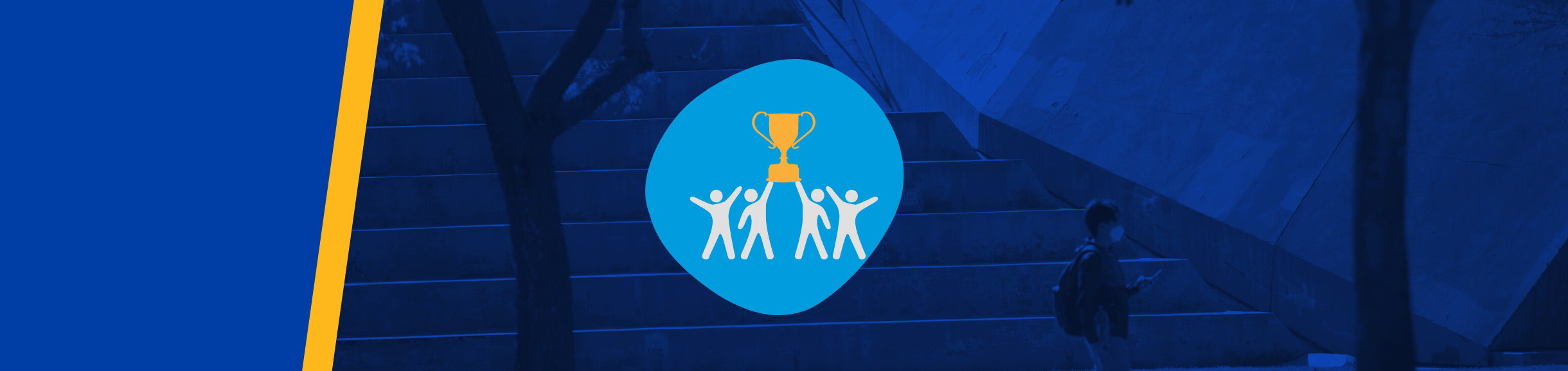 A graphic of four figures holding up a gold trophy.