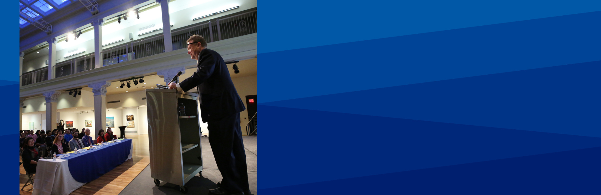 man provides news and updates to an audience