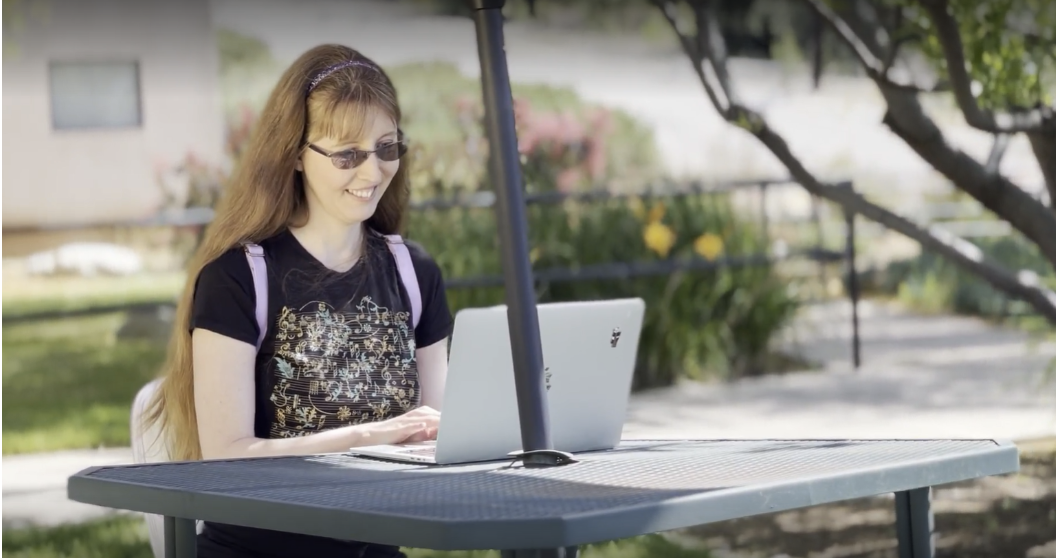 Michelle on computer outside