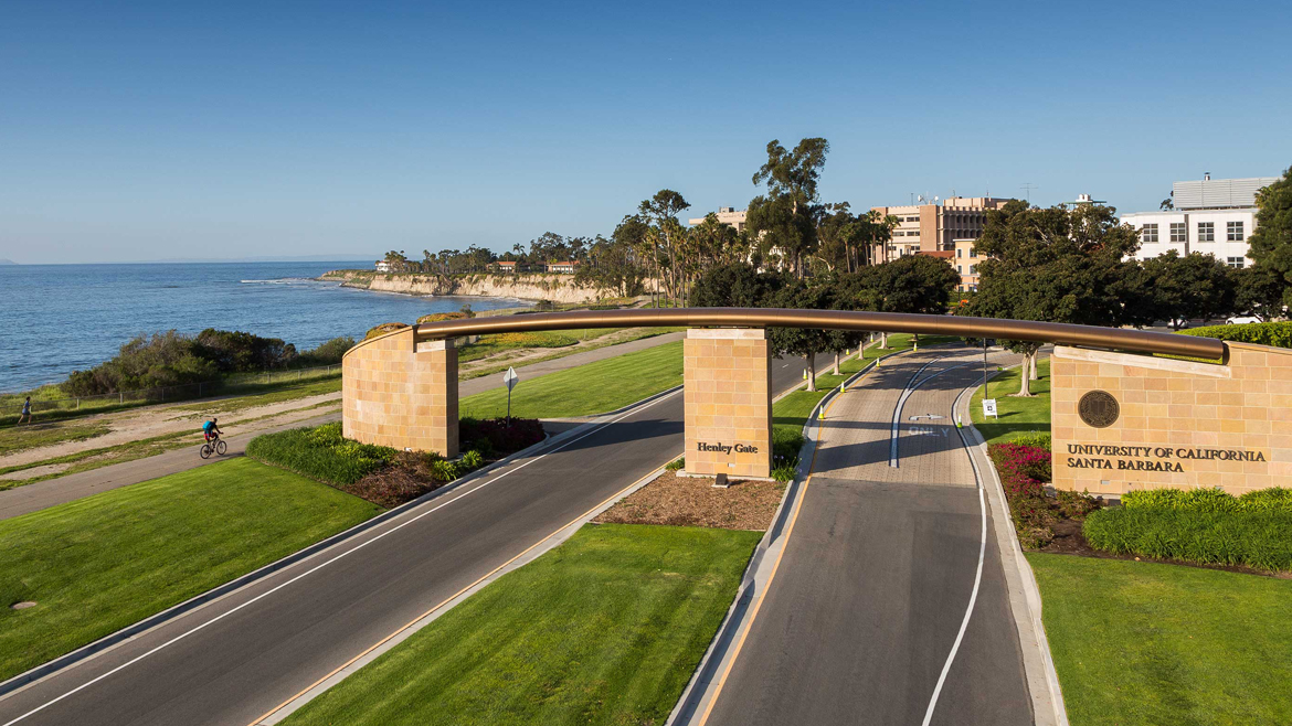oceanside Santa Barbara entrance with paved entrance surrounded by grass