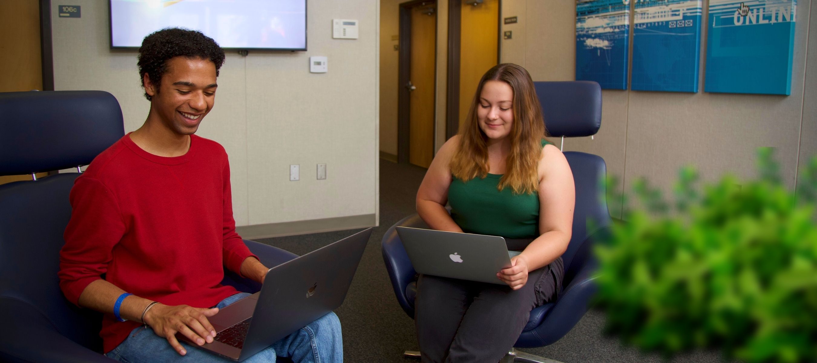 smiling-students-work-separately-on-laptops