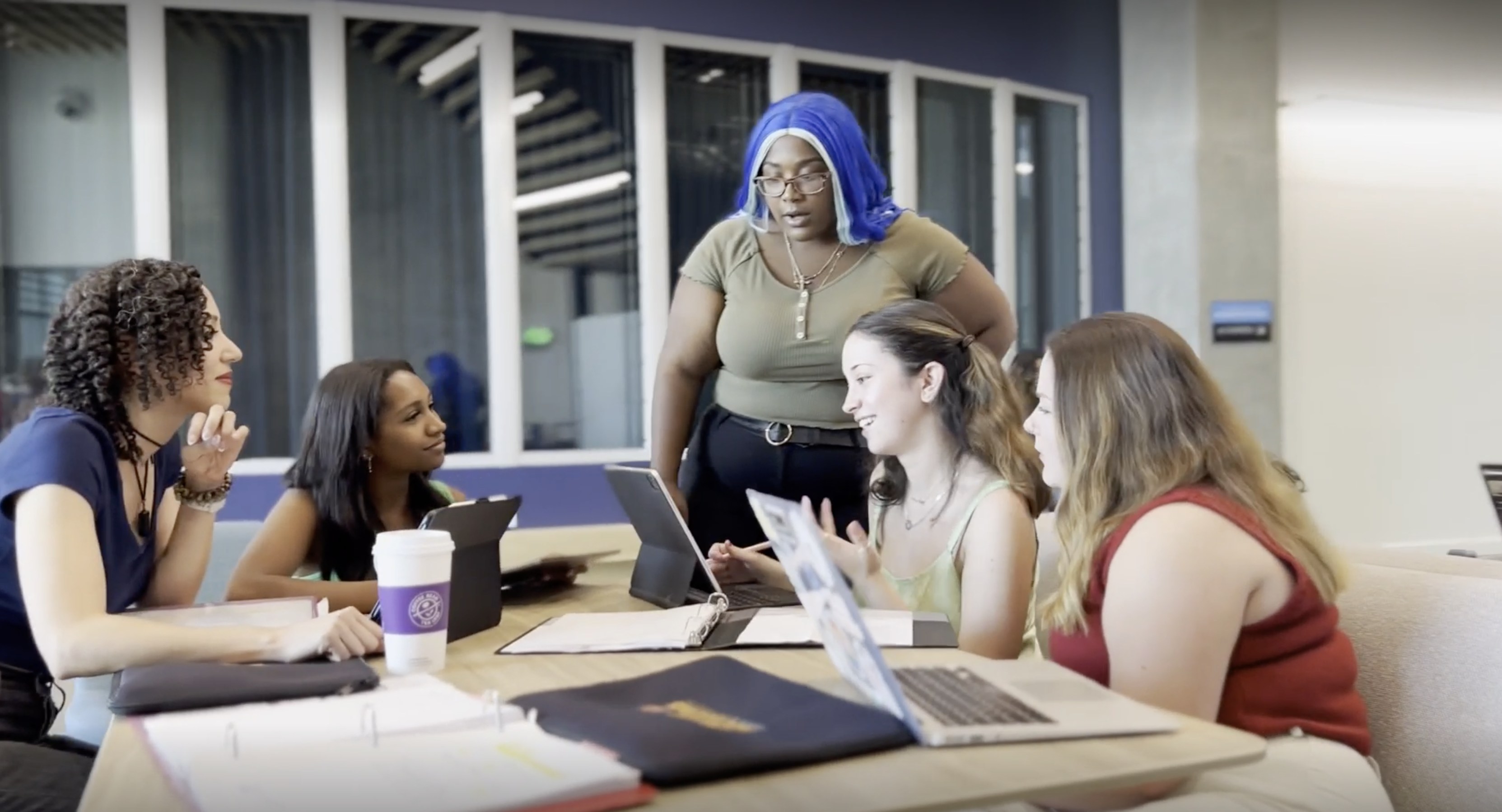 students review computer screens