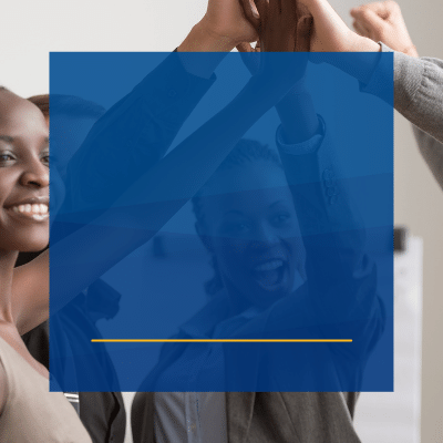 team of 6 diverse professionals high five each other
