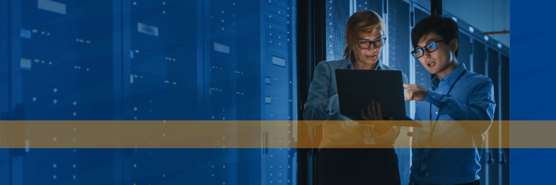 woman and man gaze over laptop computer