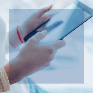 womans hand hold tablet